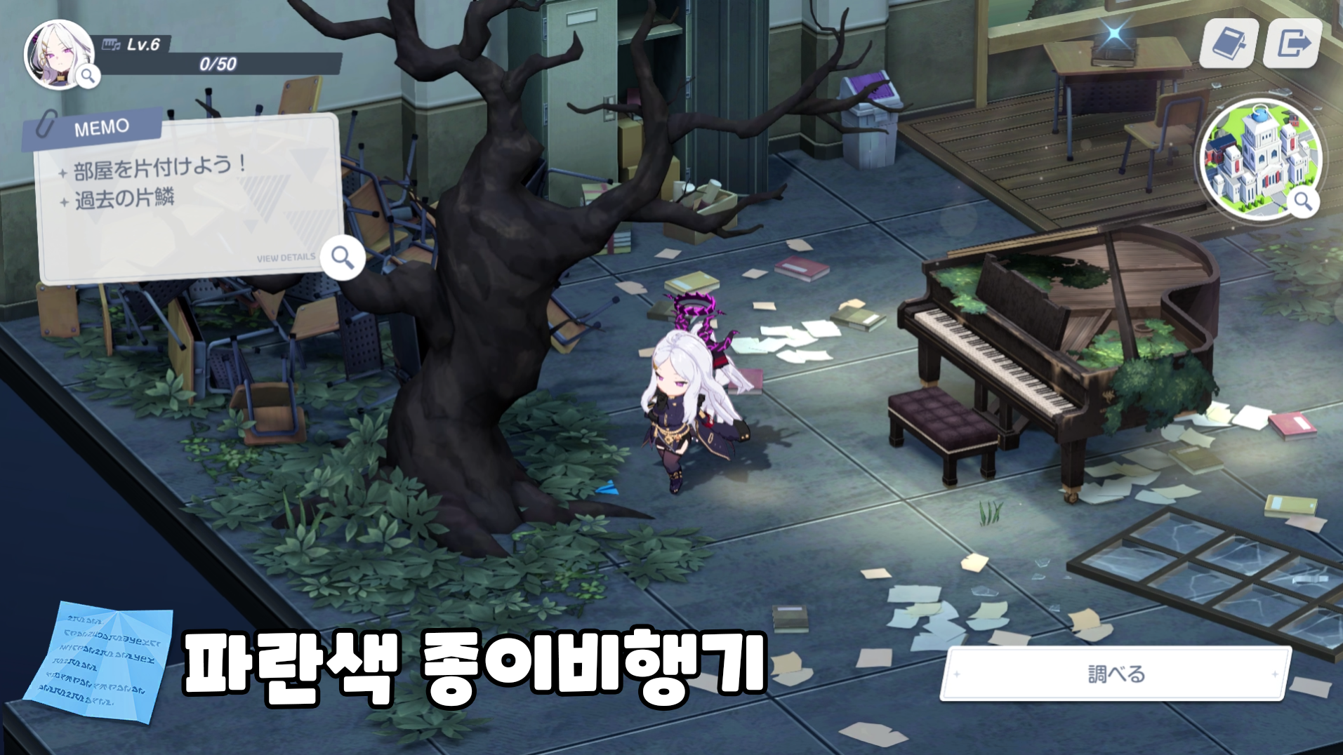 파란색 종이비행기 위치 - 피아노실
