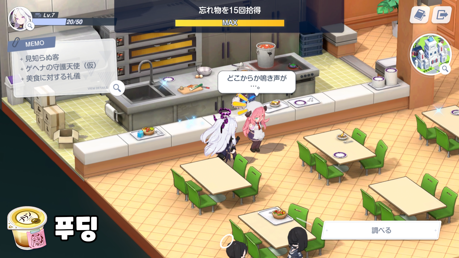 학생식당 - 흰색 종이비행기, 푸딩, 위생점검표, 주리 레시피