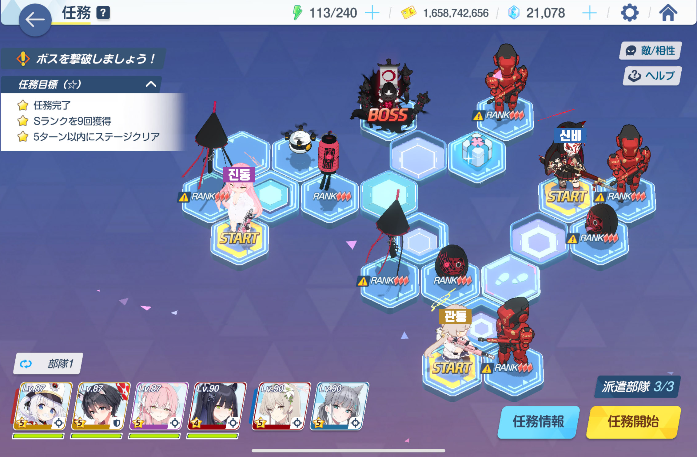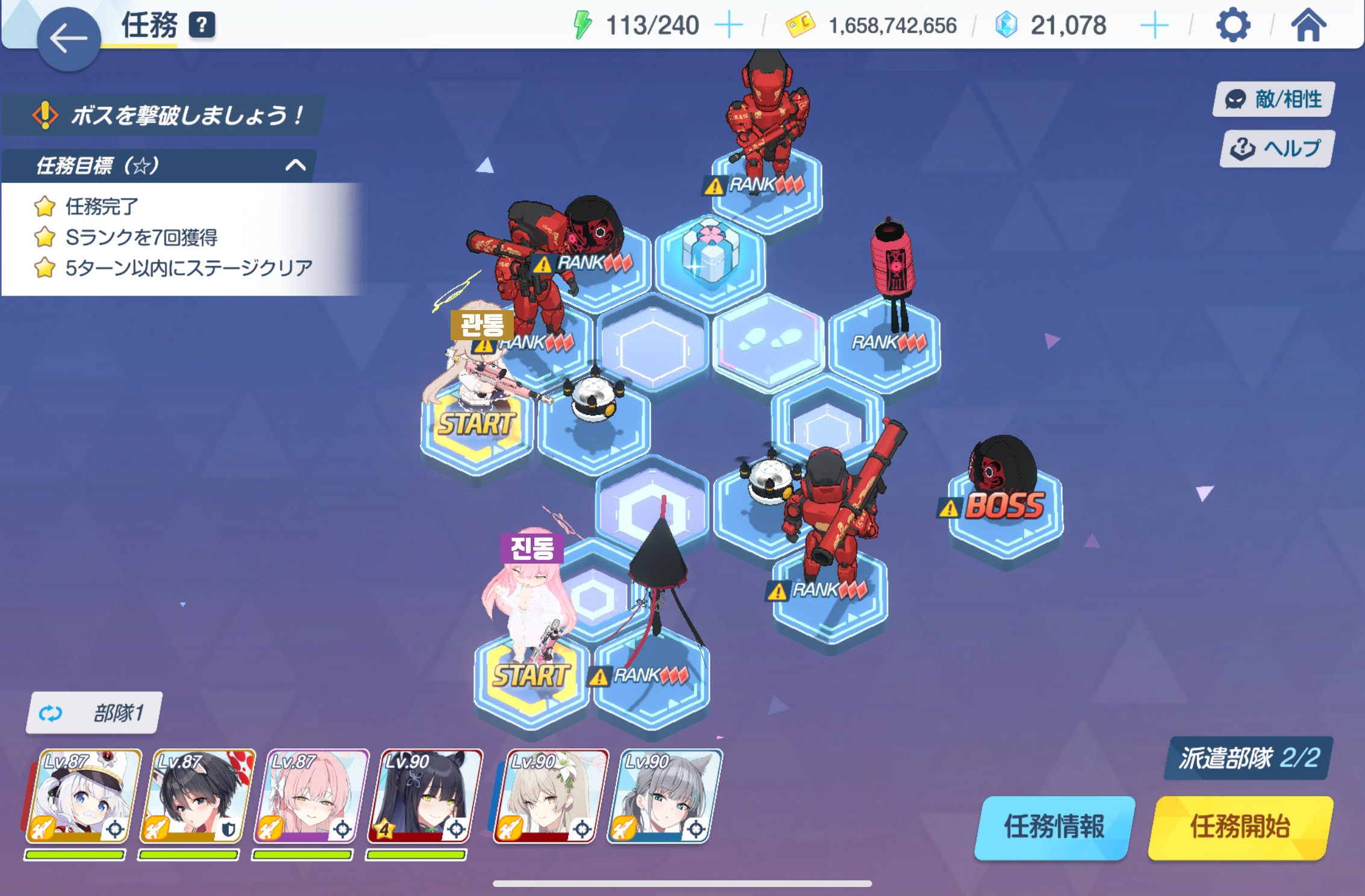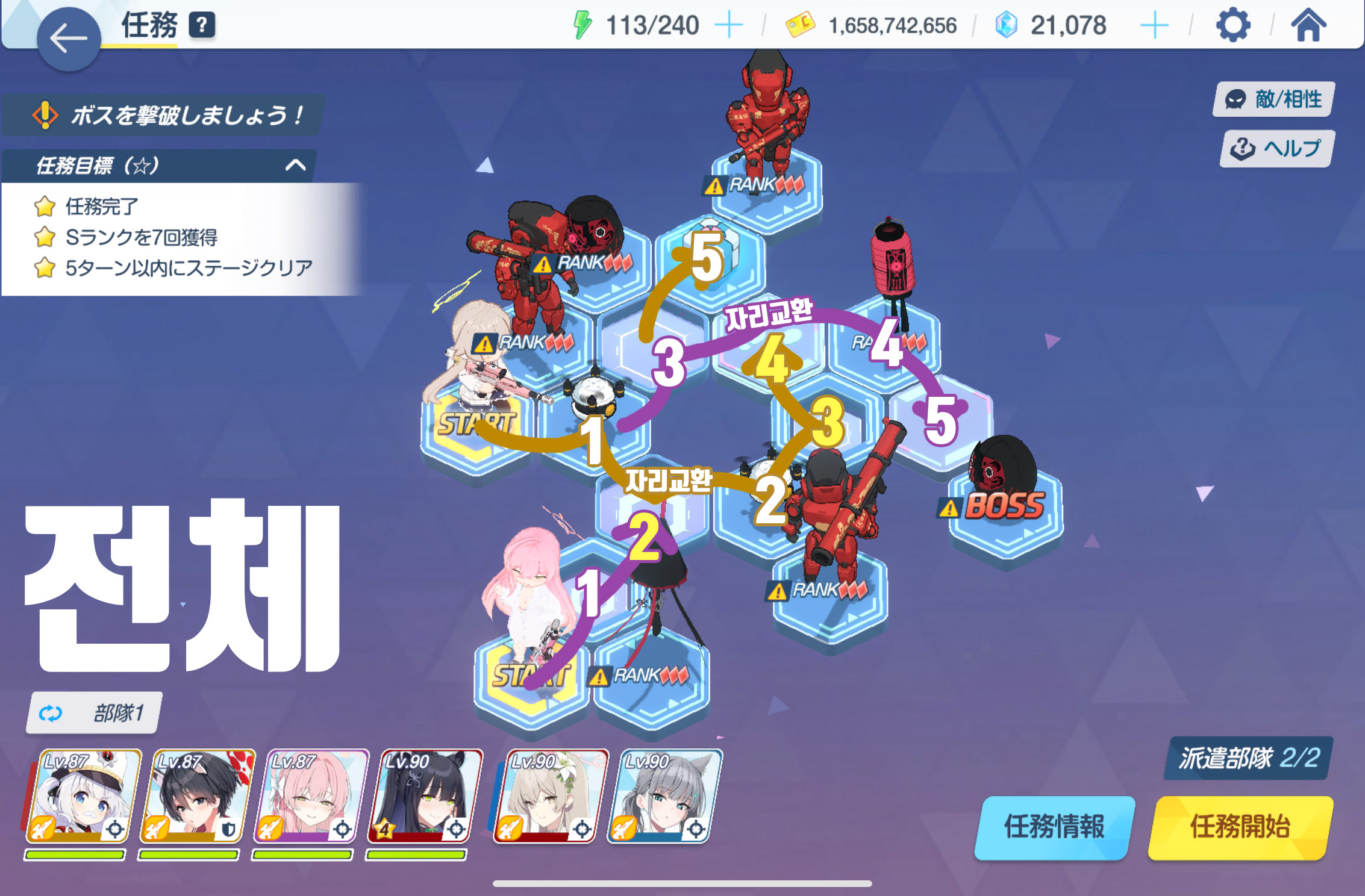 임무완료 / 전투 S랭크 7회 / 5턴 내에 스테이지 클리어