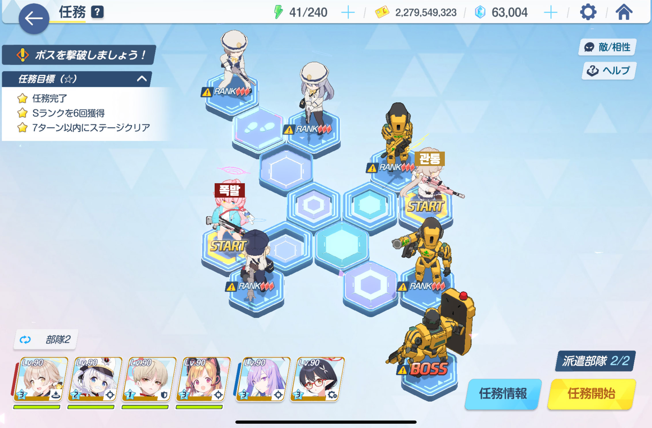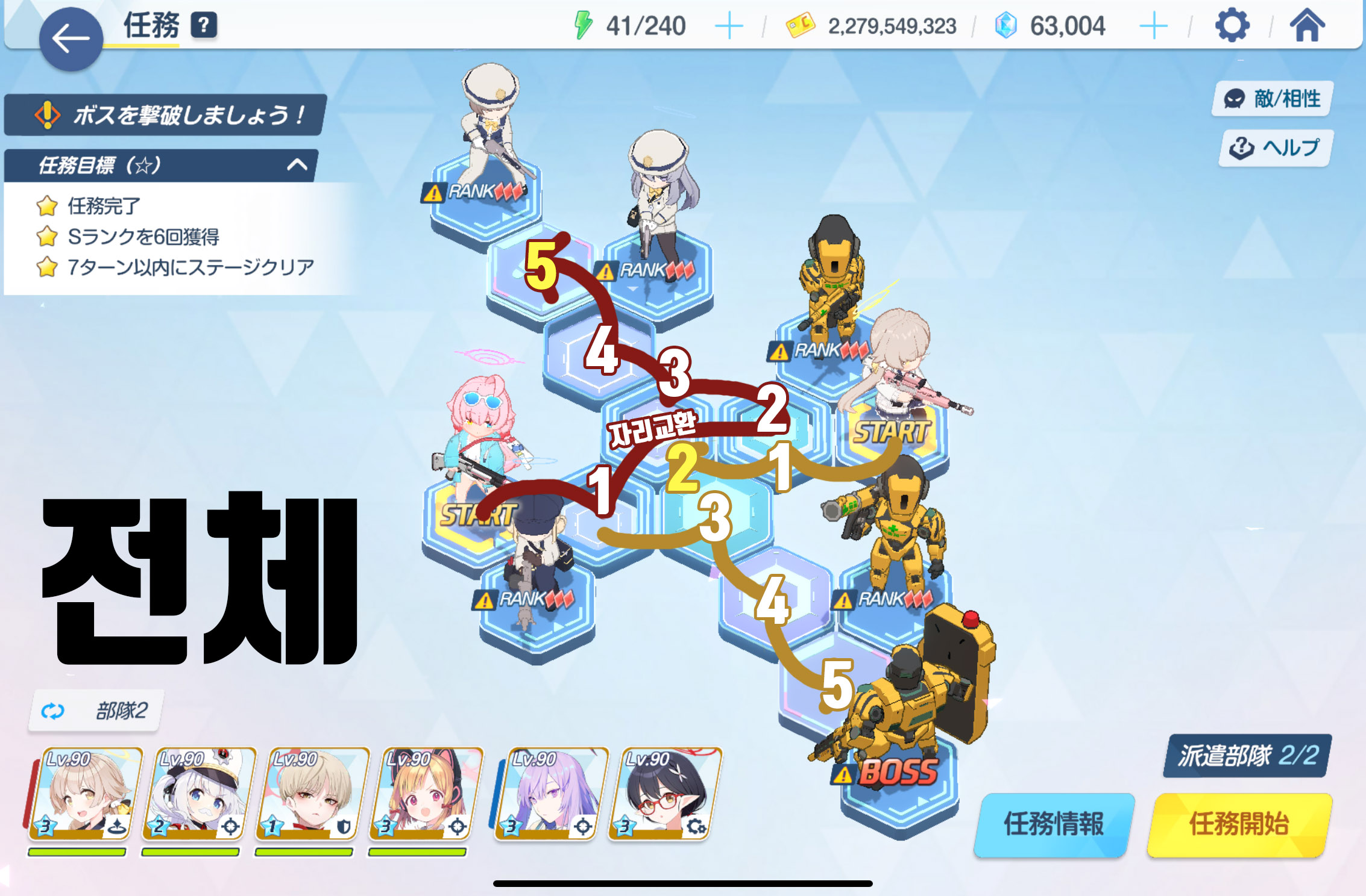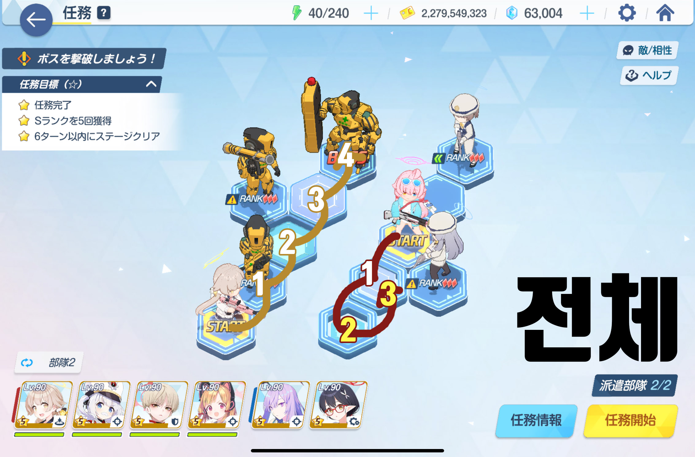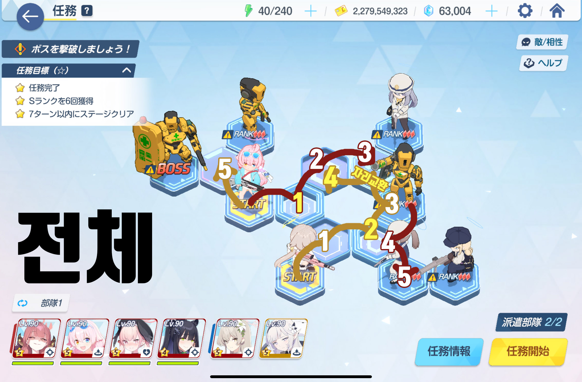 임무완료 / 전투 S랭크 6회 / 7턴 내에 스테이지 클리어