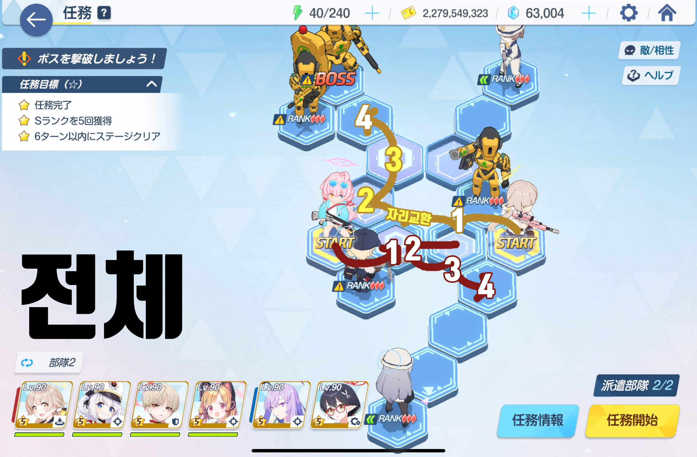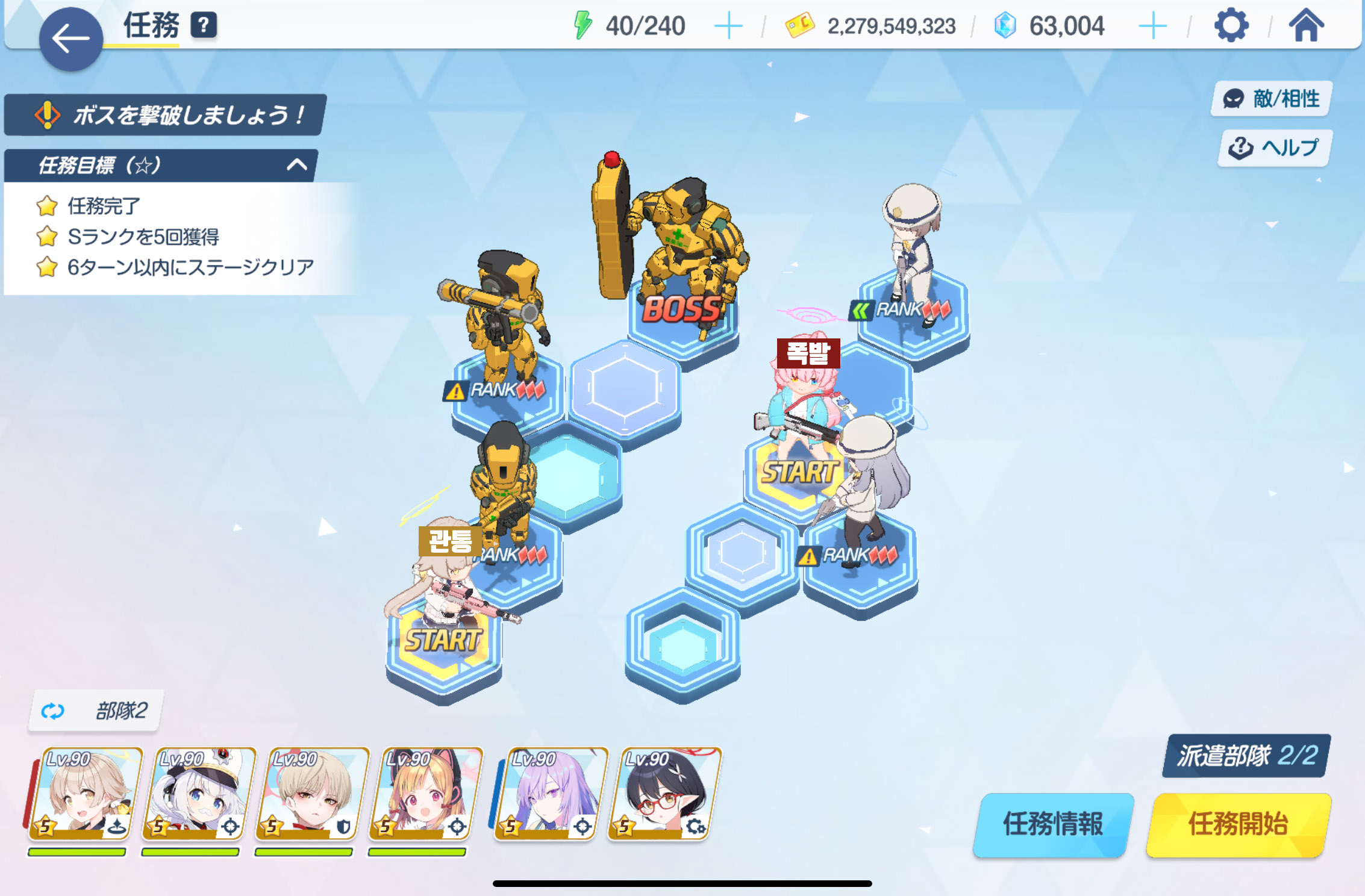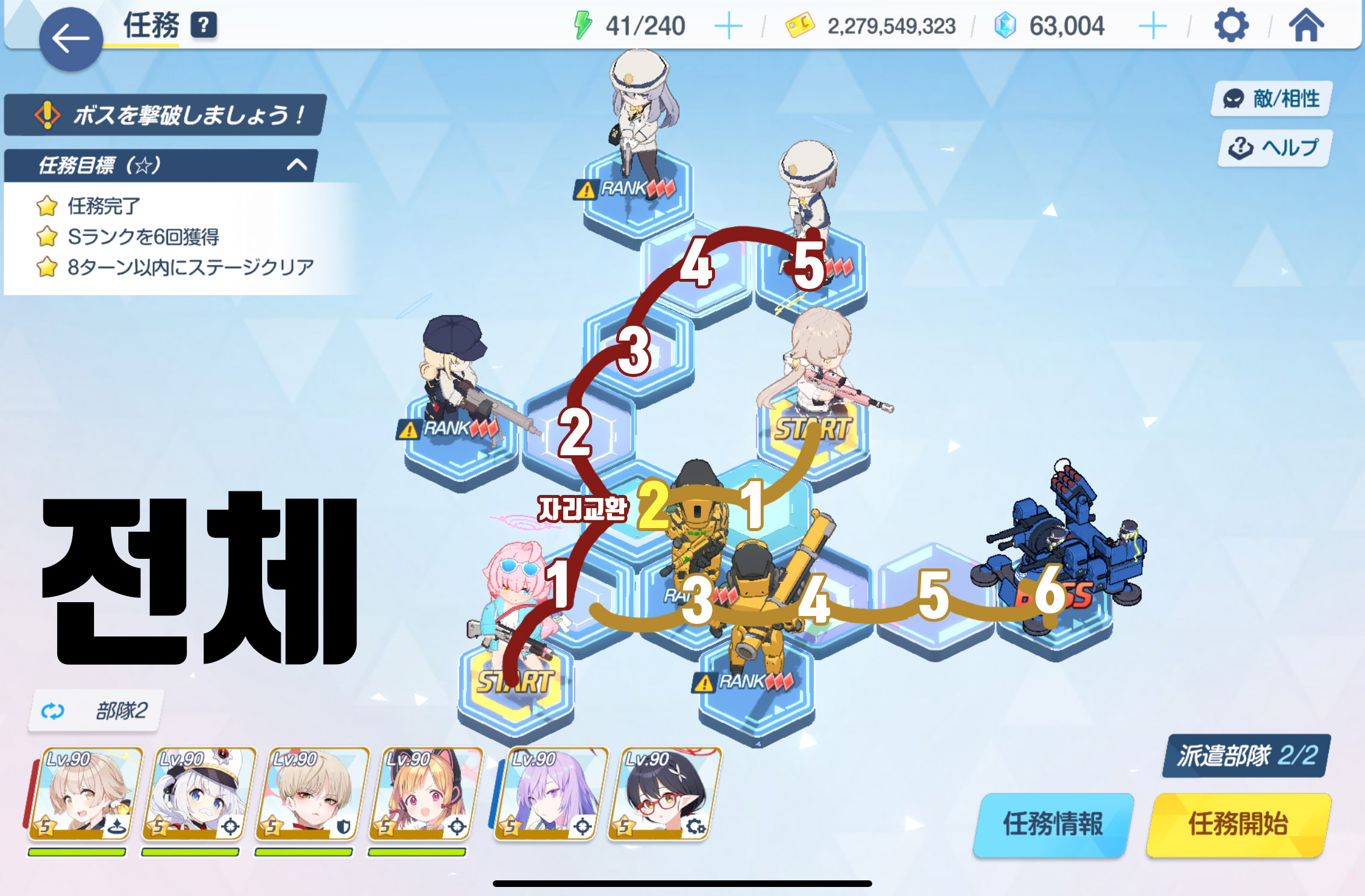 임무완료 / 전투 S랭크 5회 / 6턴 내에 스테이지 클리어