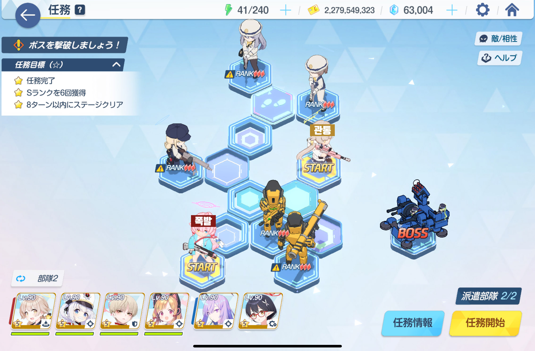 임무완료 / 전투 S랭크 6회 / 8턴 내에 스테이지 클리어