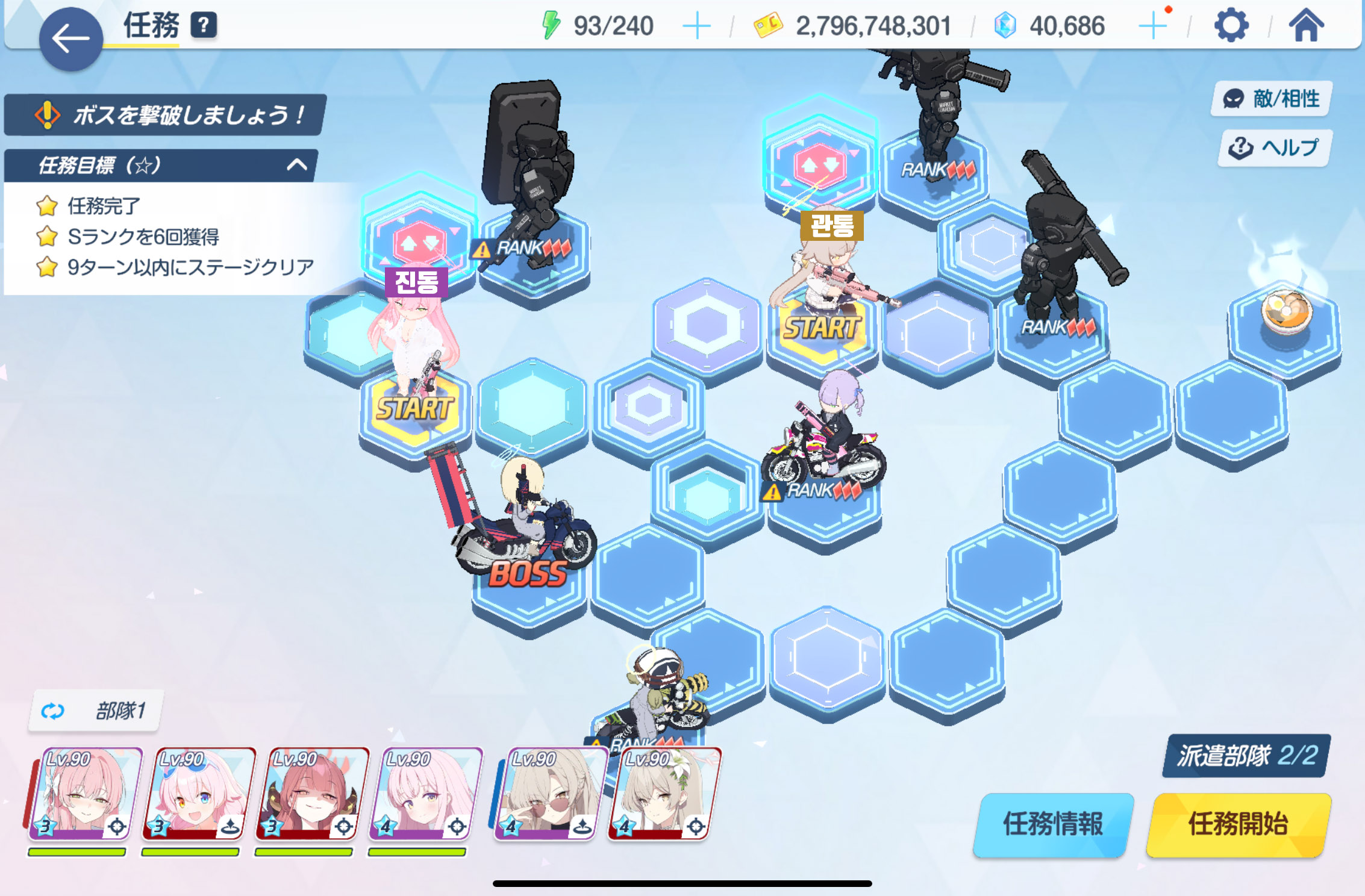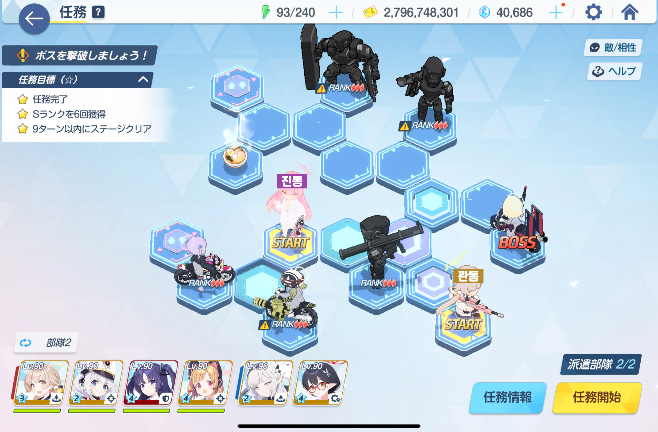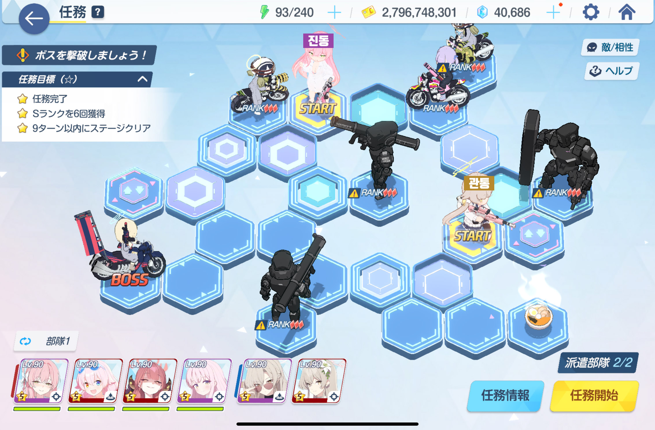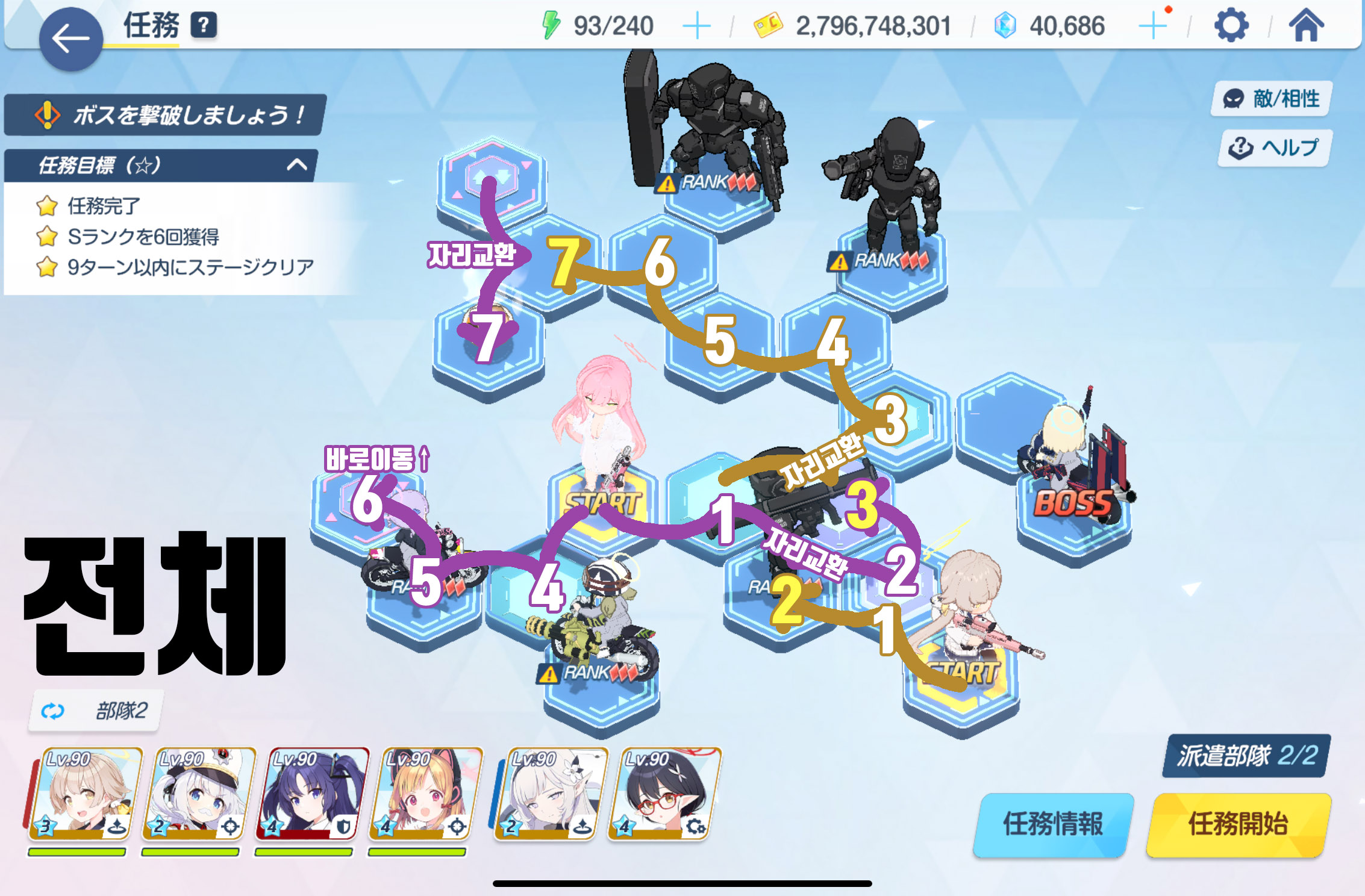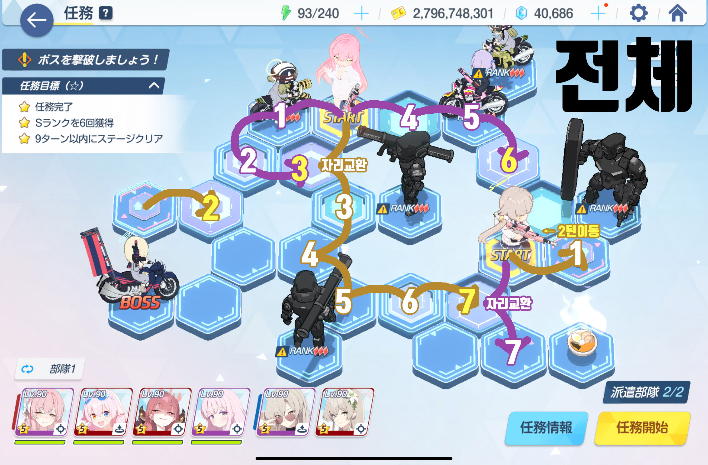 임무완료 / 전투 S랭크 6회 / 9턴 내에 스테이지 클리어