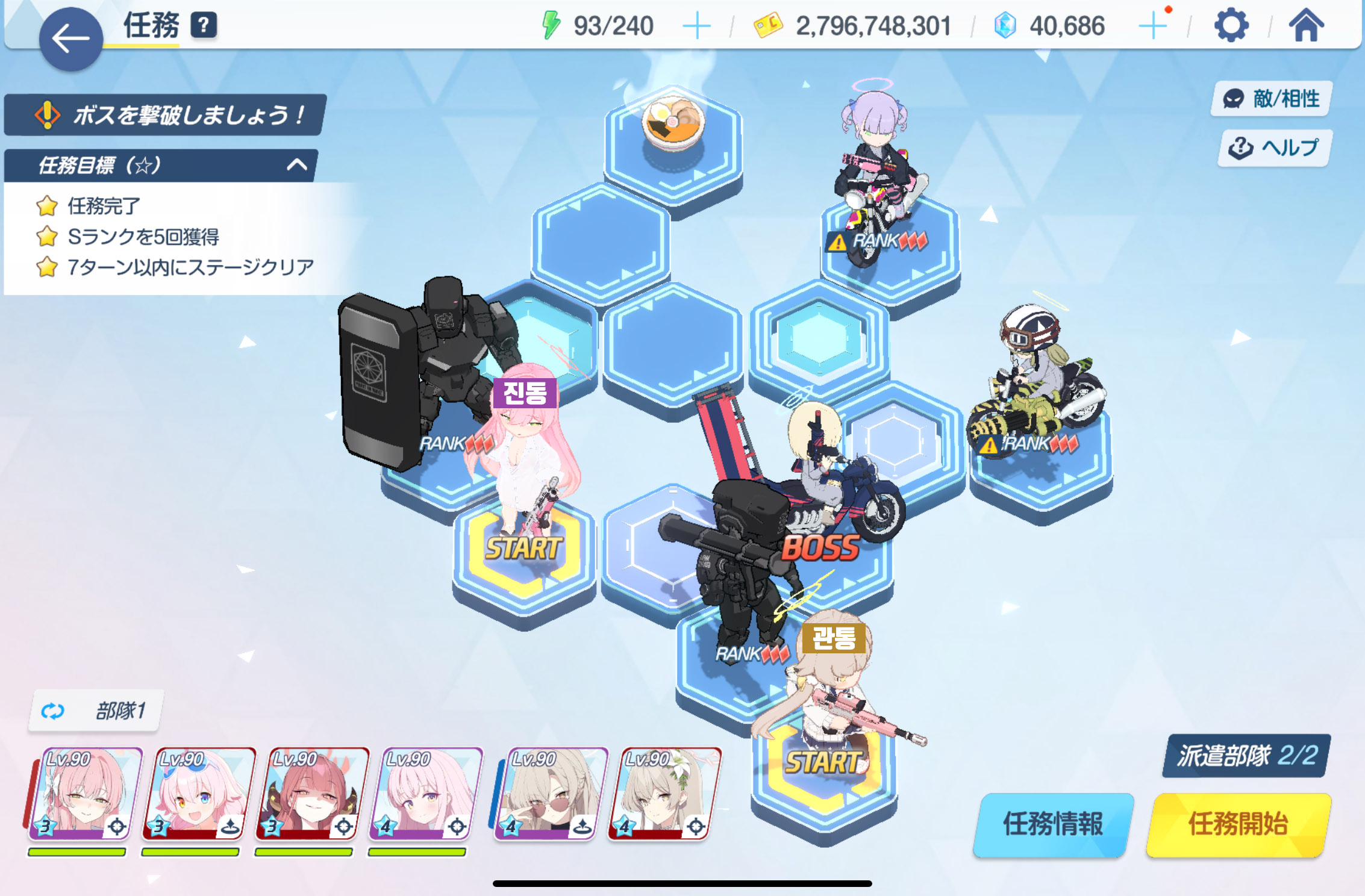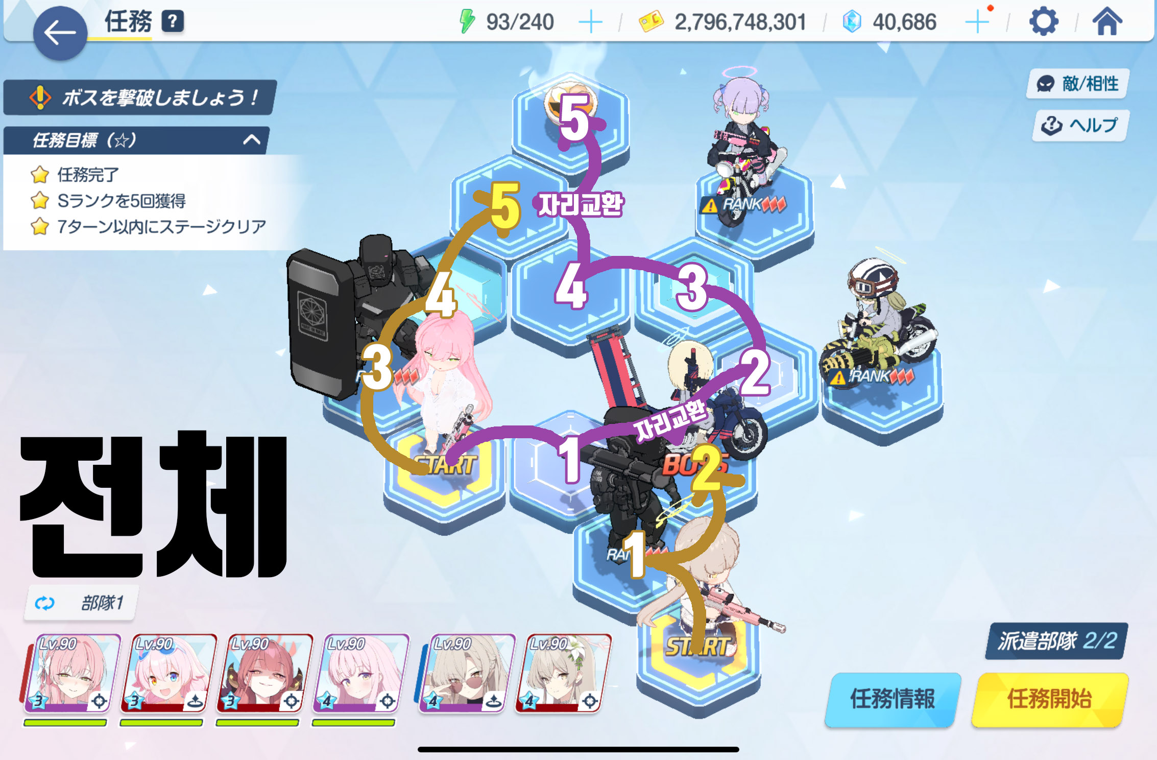 임무완료 / 전투 S랭크 5회 / 7턴 내에 스테이지 클리어
