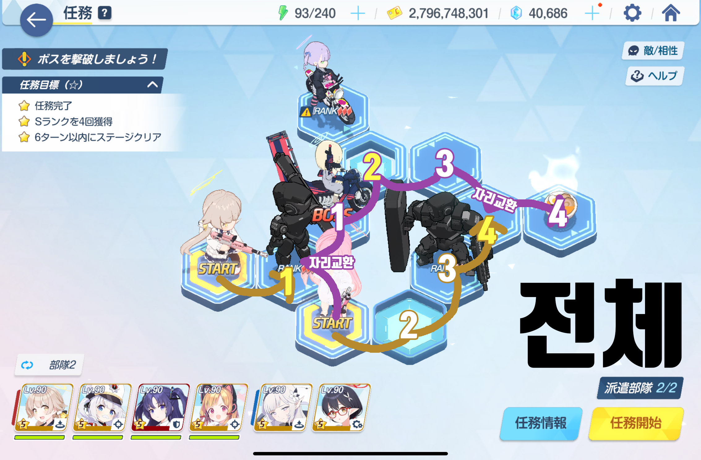 임무완료 / 전투 S랭크 4회 / 6턴 내에 스테이지 클리어