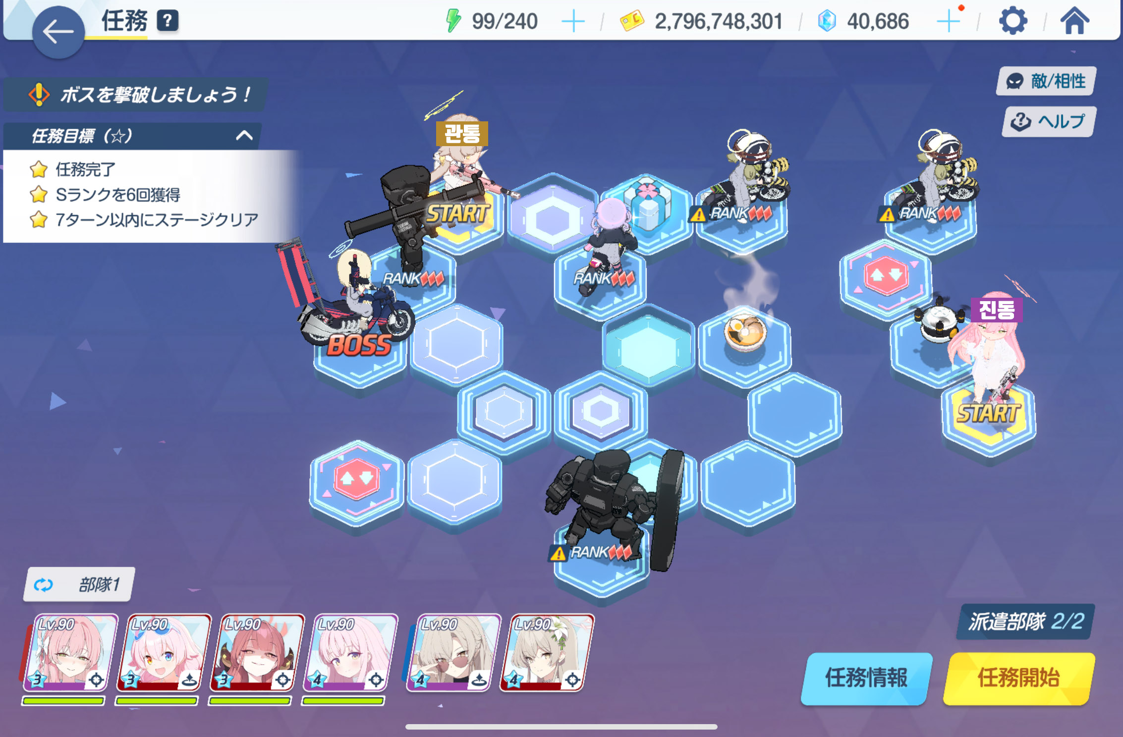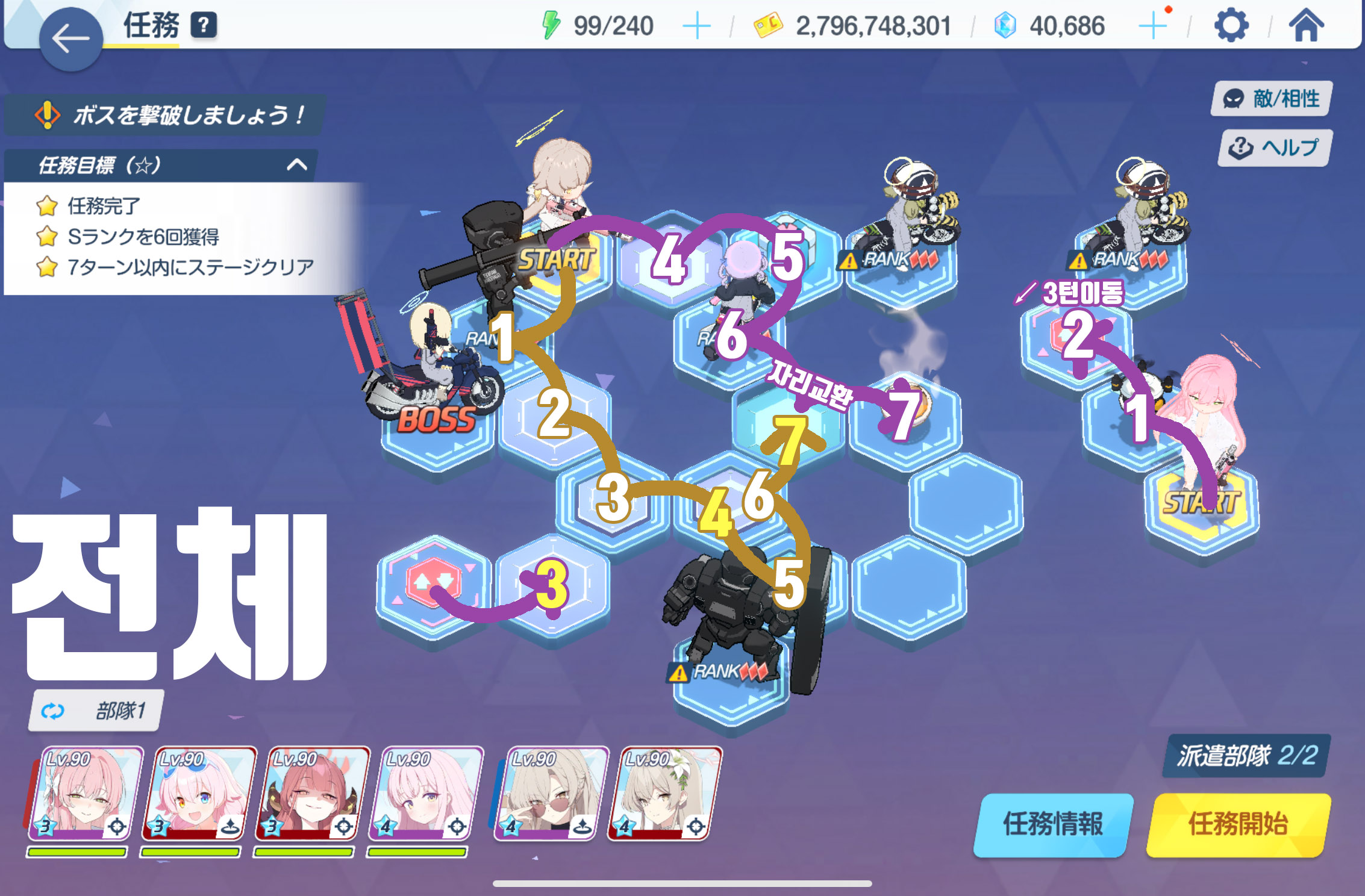 임무완료 / 전투 S랭크 6회 / 7턴 내에 스테이지 클리어