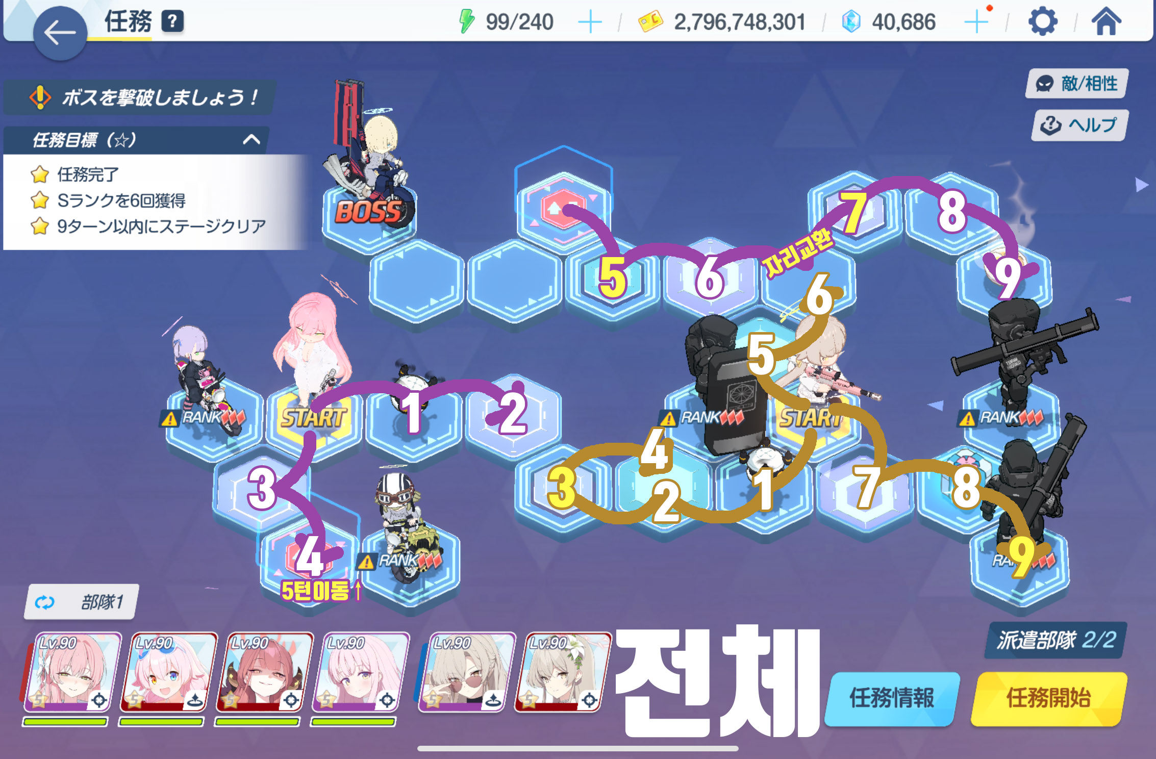 임무완료 / 전투 S랭크 6회 / 9턴 내에 스테이지 클리어
