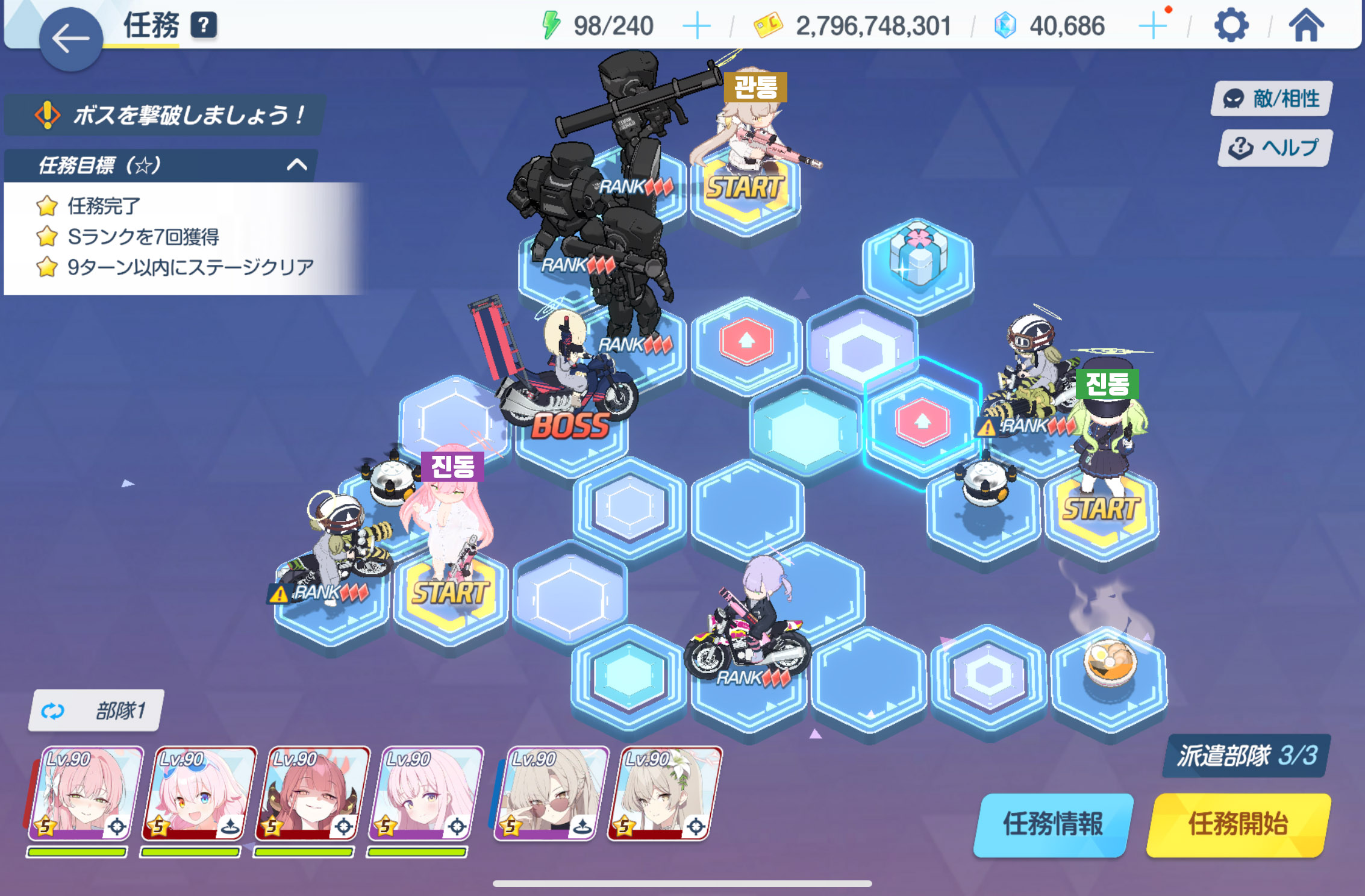 임무완료 / 전투 S랭크 7회 / 9턴 내에 스테이지 클리어