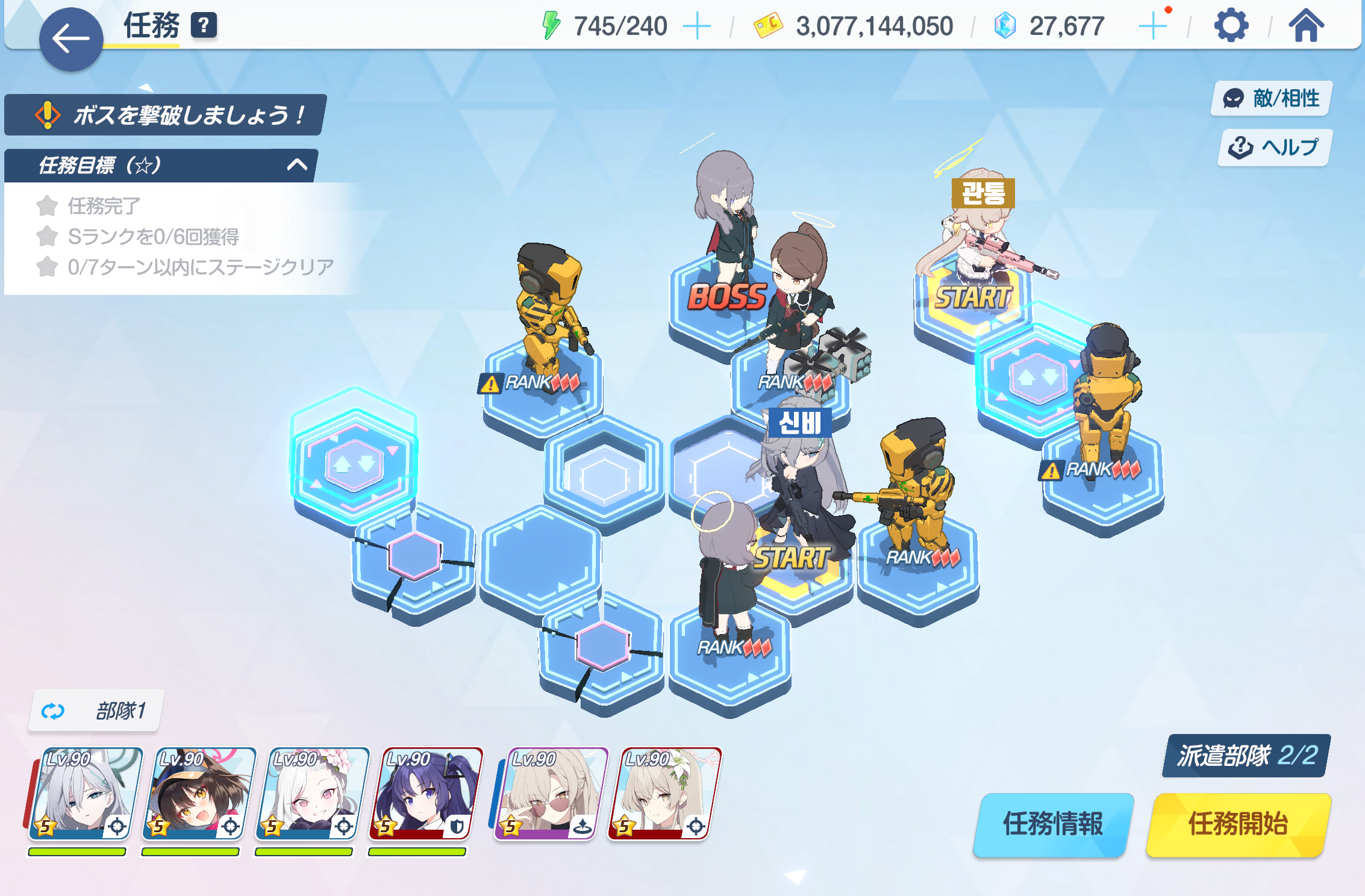 임무완료 / 전투 S랭크 6회 / 9턴 내에 스테이지 클리어
