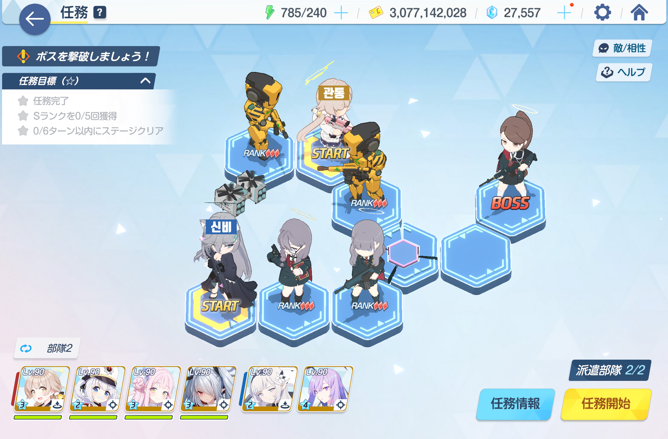 임무완료 / 전투 S랭크 5회 / 6턴 내에 스테이지 클리어